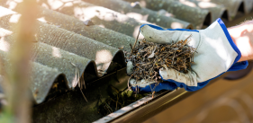 Here at Simply House Washing we remove any solid debris or plant growth from the insides of the gutters by hand, meaning no blowers and no spill onto the exterior of the building.   We take this waste matter away with us on completion, unless you have suitable garden waste bins you are happy for us to use on-site.